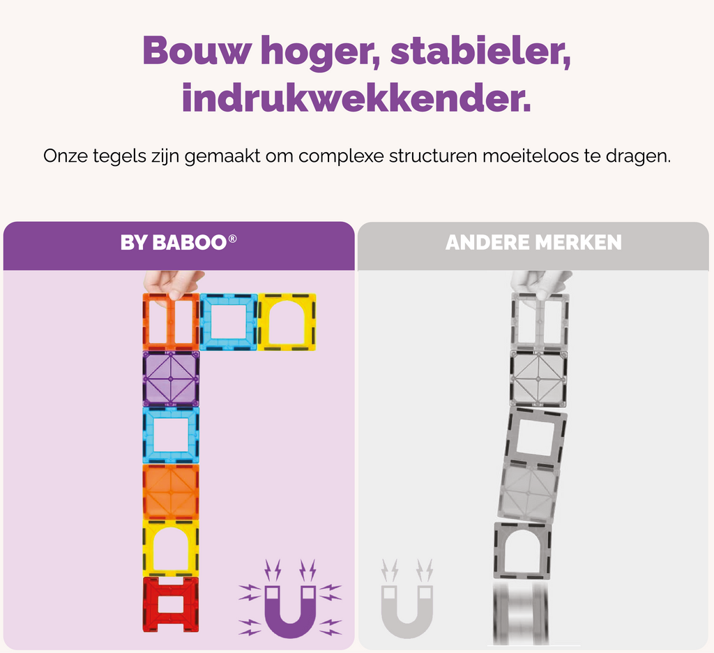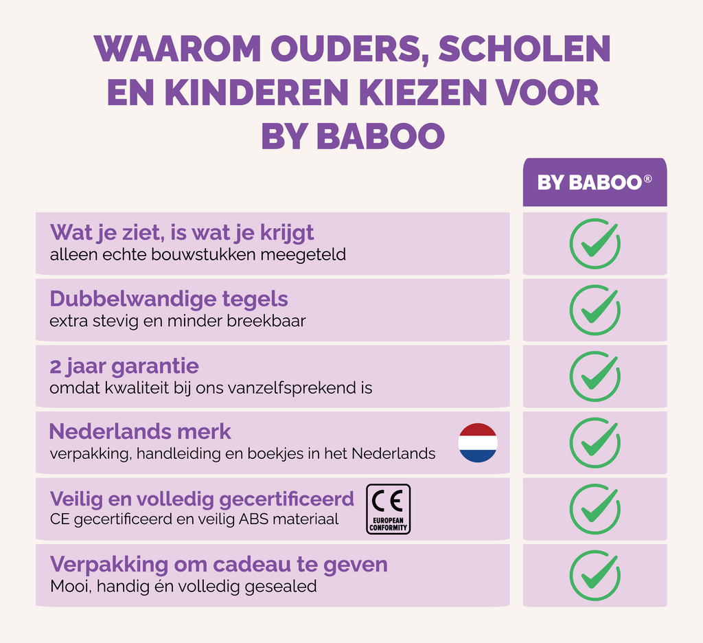 By Baboo staat voor grenzeloze creativiteit en ontdekken. Ons speelgoed stimuleert fantasievol bouwen, waarbij ieder kind zijn eigen weg kiest. Spelen zonder einddoel – dát is open-ended, geïnspireerd op Montessori: zelfstandig leren, onderzoeken en creëren. Elke dag is een nieuw avontuur.